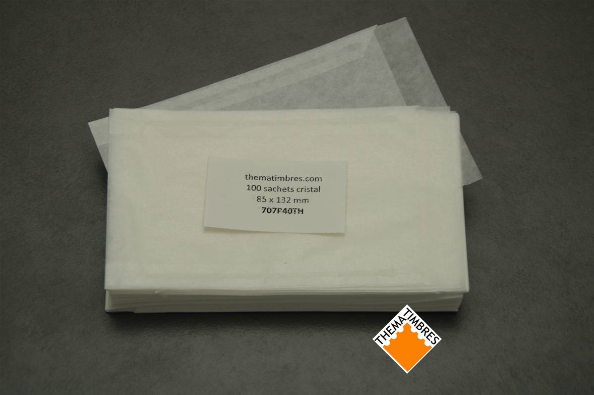 100 sachets cristal 85 x 132 mm + 16 mm de rabat