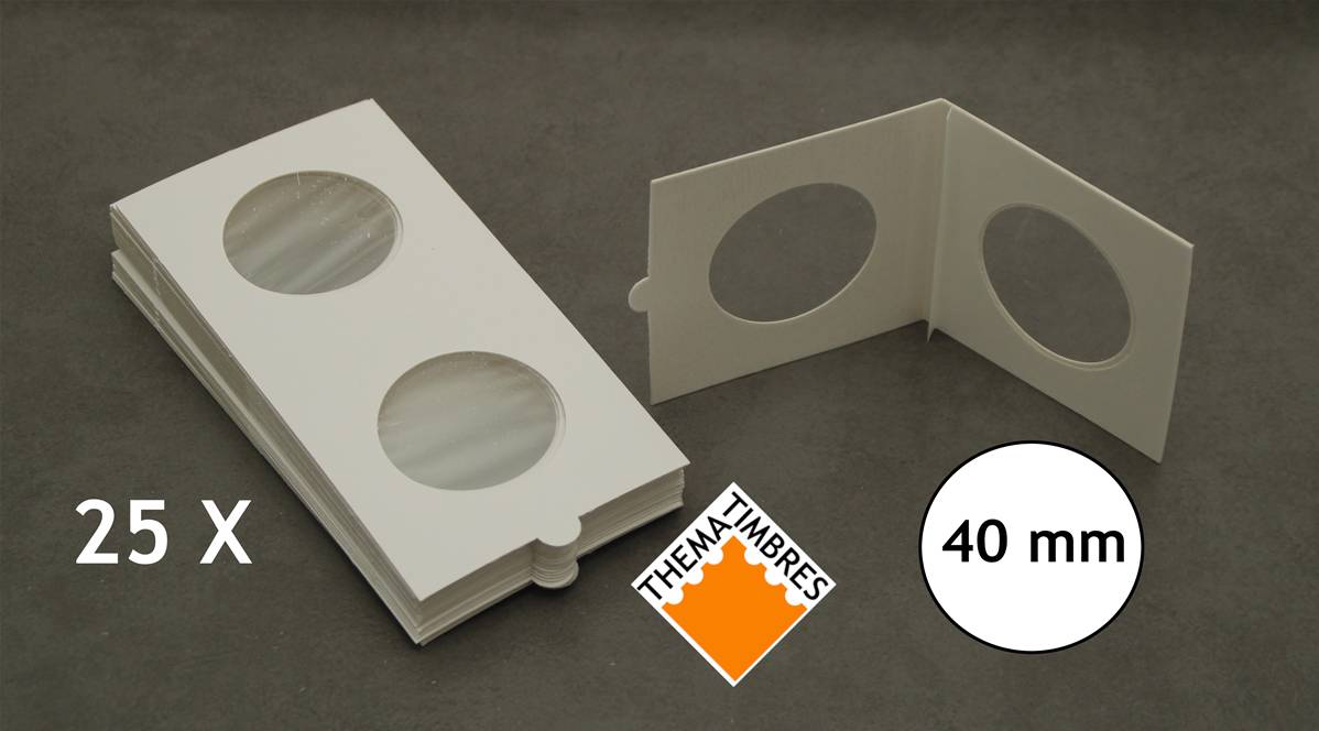 boite originale de 25 étuis numismatiques carton autocollants avec fenêtre transparente diamètre 40 mm.