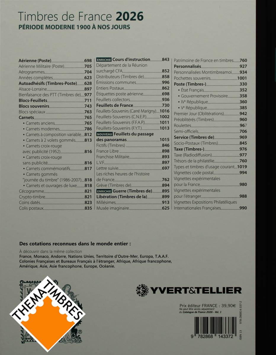 Catalogue de cotation des Timbres de France 2026 Yvert & Tellier 138992