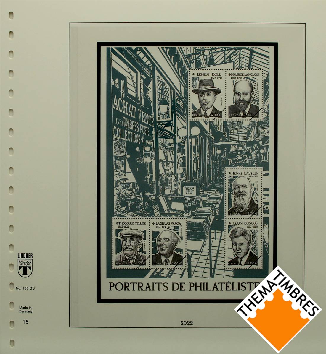 Le système Lindner T est constitue d'une feuille préimprimée au recto de laquelle est collée une page plastique