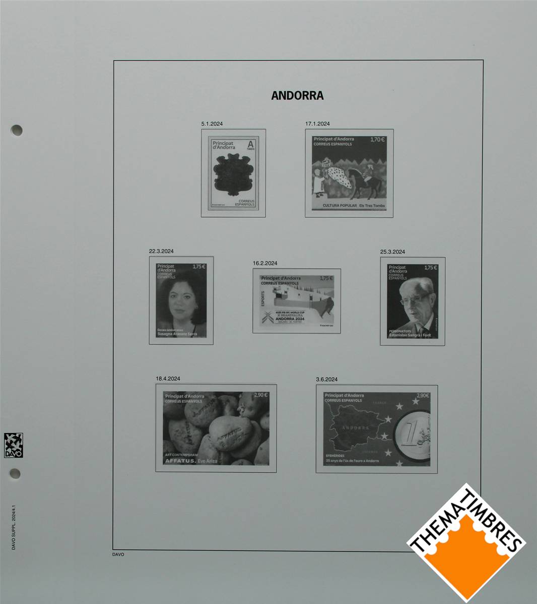 Feuilles Luxe pour les timbres d'Andorre Espagnol de 2024 DAVO 1454
