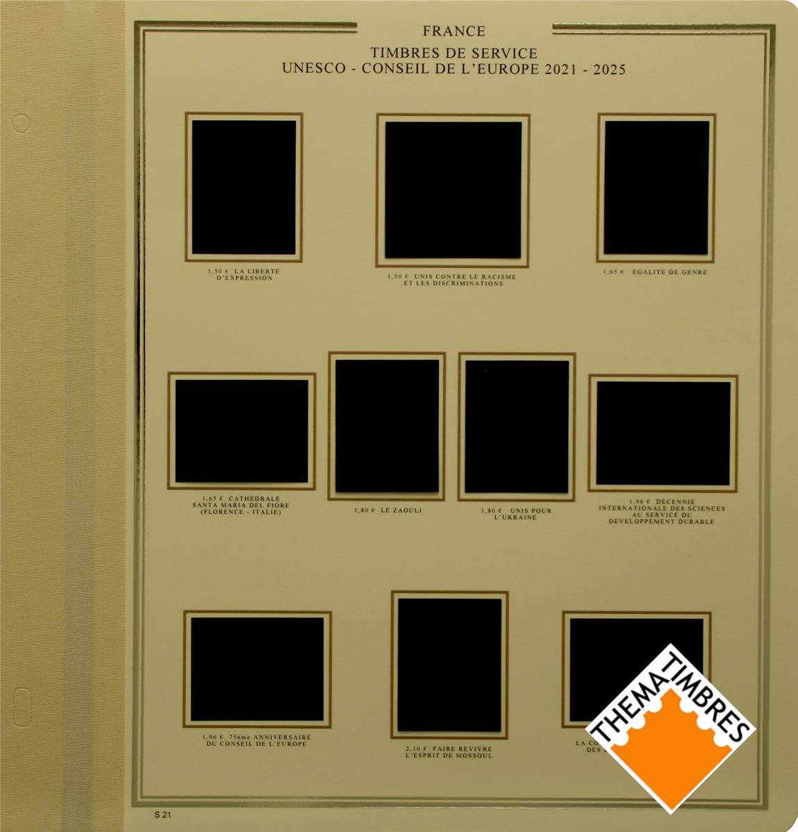 1 feuille pour les timbres de service émis par le conseil de l'Europe et l'Unesco de 2021 à 2025 (S21)