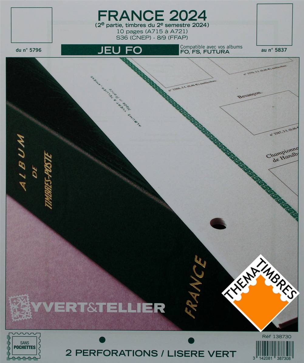 Jeu France Futura FO à liseré vert pour les timbres du 2e semestre 2024 Yvert et Tellier 138730