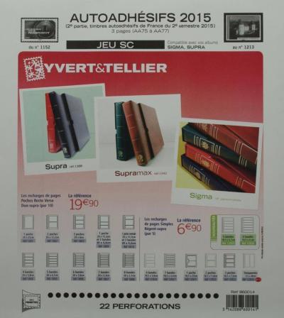 3 pages (AA75 à AA77) pour les timbres autocollants et carnets autoadhésifs émis au 2e semestre 2015 ( du numero 1152 au numero 1213)