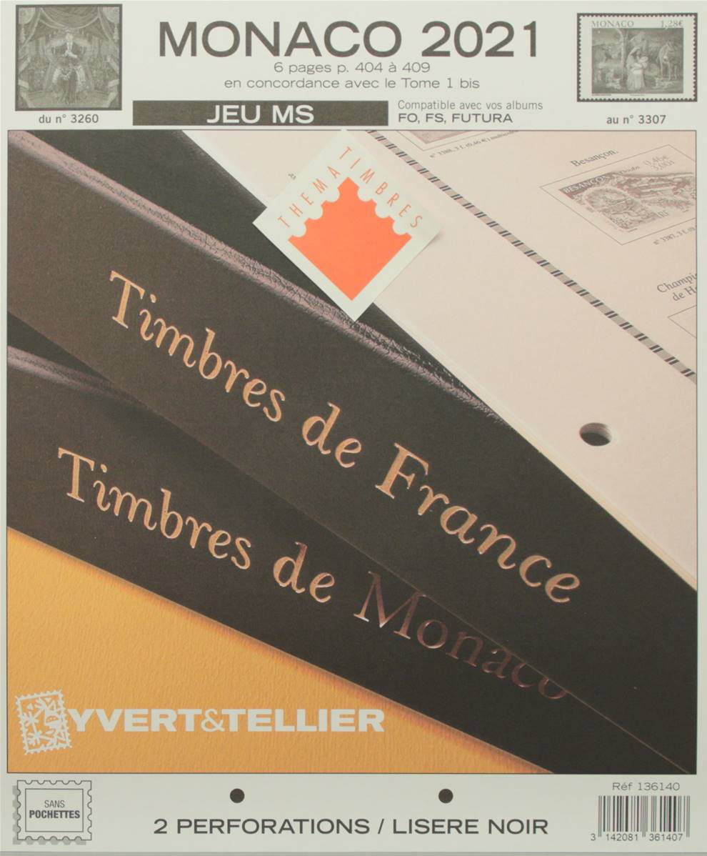 6 pages (404 à 409) pour les timbres émis en 2021 (du numéro 3260 au numéro 3...) par la Principauté de Monaco